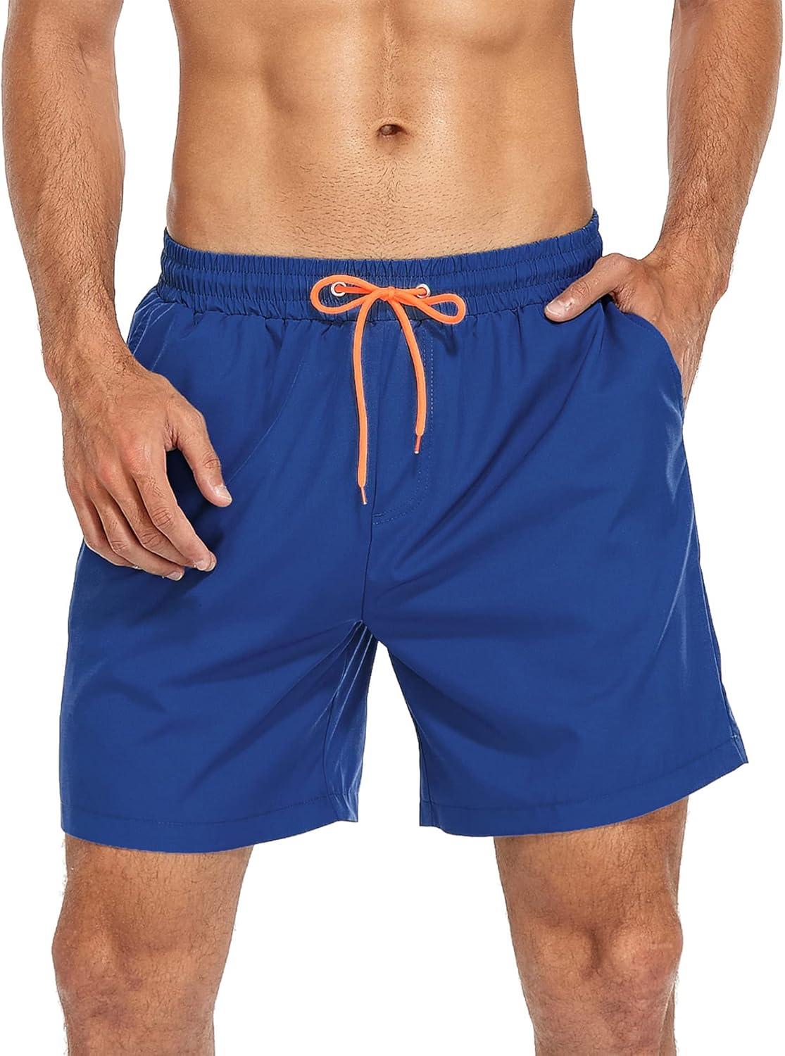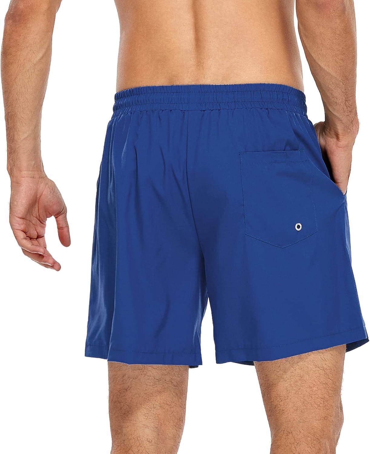 Mens Swim Trunks with Compression Liner Board Shorts for Men Quick Dry Swimsuits Bathing Suit Swimwear M-XXL(7″klein Blue)