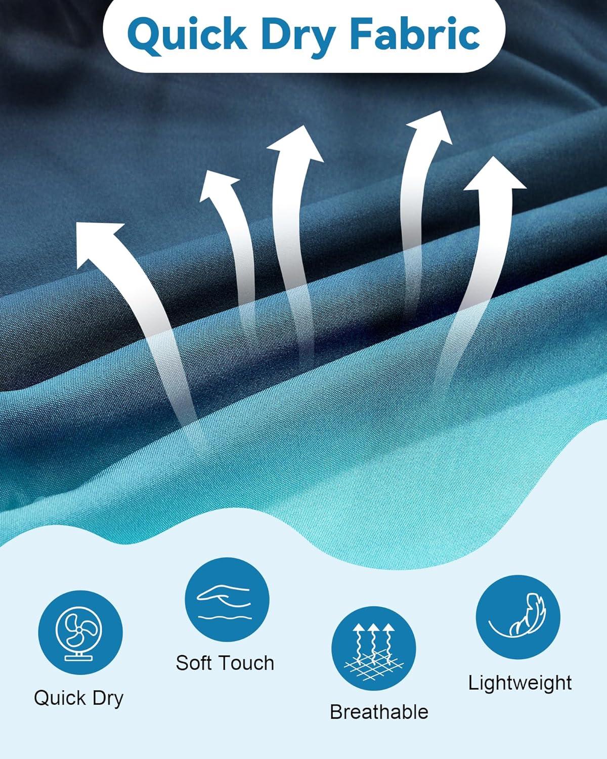Mens Swim Trunks with Compression Liner Board Shorts for Men Quick Dry Swimsuits Bathing Suit Swimwear M-XXL(Black Blue Gradient)