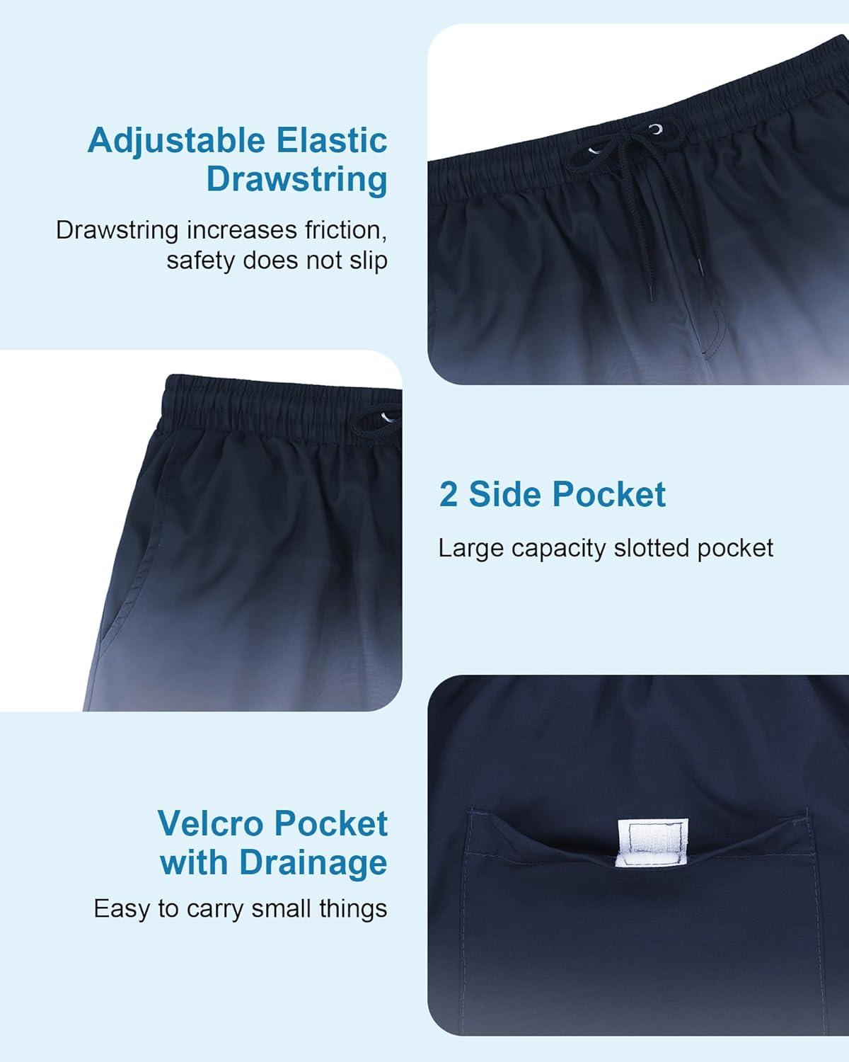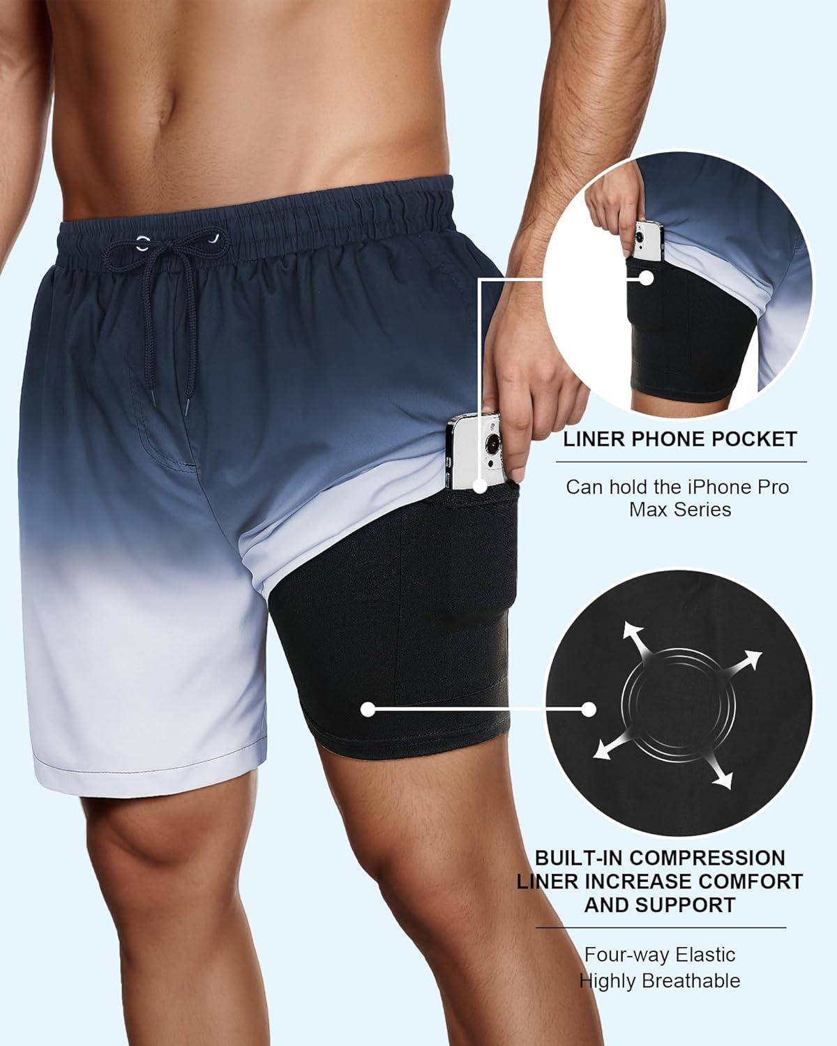 Mens Swim Trunks with Compression Liner Board Shorts for Men Quick Dry Swimsuits Bathing Suit Swimwear M-XXL(Black Blue Gradient)