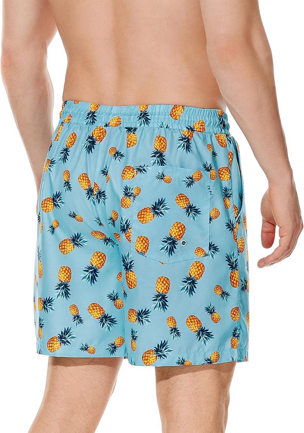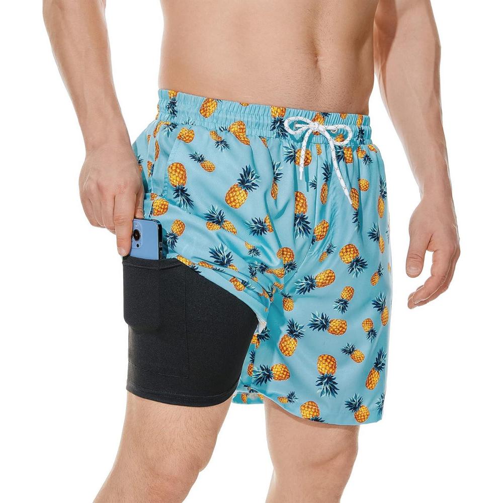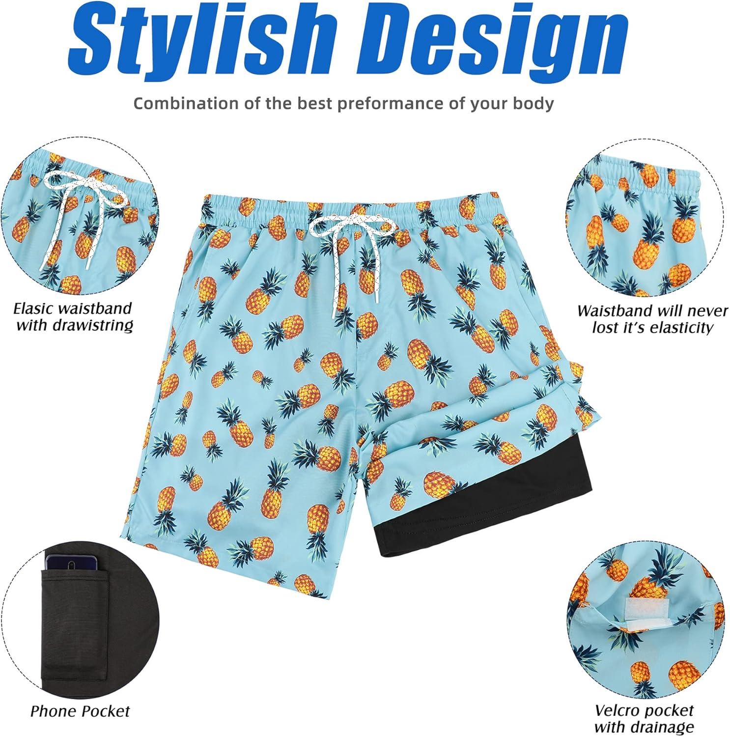 Mens Swim Trunks with Compression Liner Board Shorts for Men Quick Dry Swimsuits Bathing Suit Swimwear M-XXL(Light Blue Pineapple)
