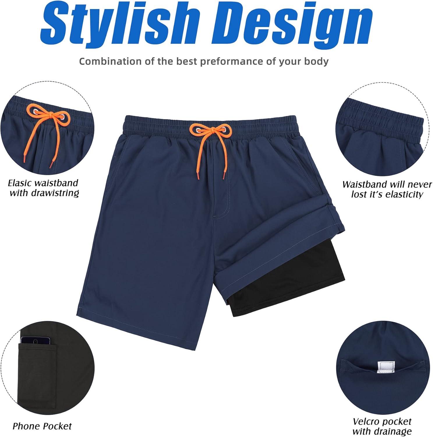 Mens Swimming Trunks Quick Dry Shorts 7 Inch Bathing Suit for Mens Swim Trunks with Compression Liner Navy Blue XXL