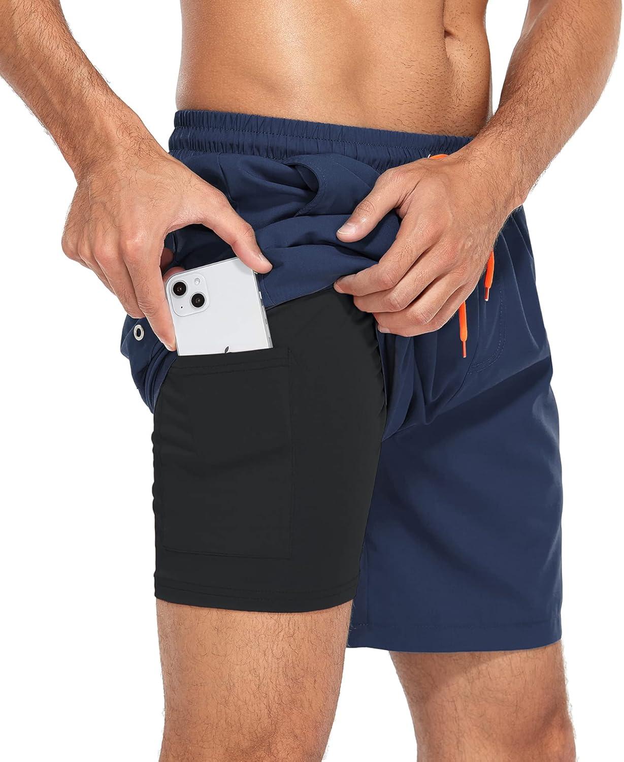 Men’s Swimming Trunks Quick Dry Shorts 7 Inch Bathing Suit for Mens Swim Trunks with Compression Liner Navy Blue XL