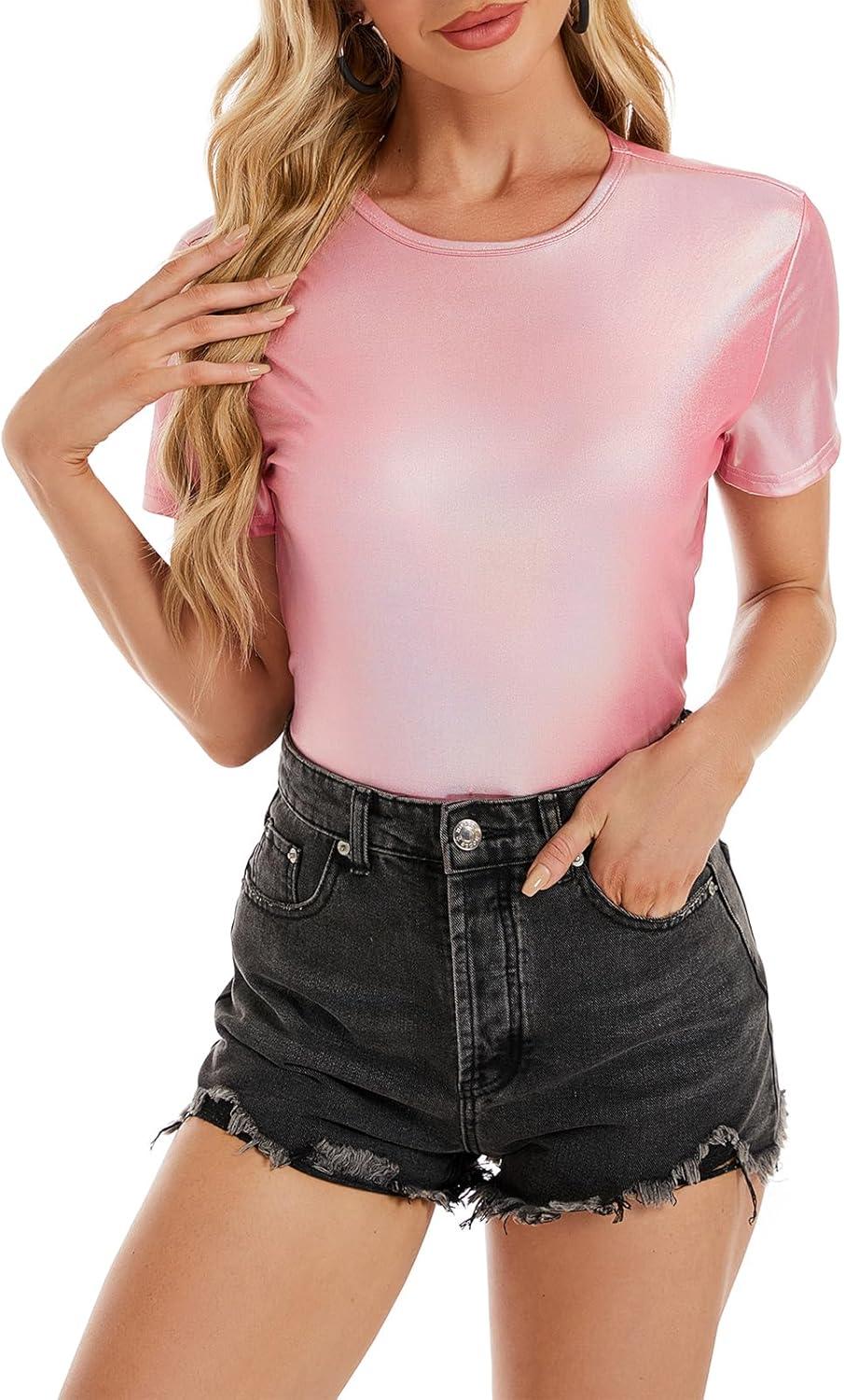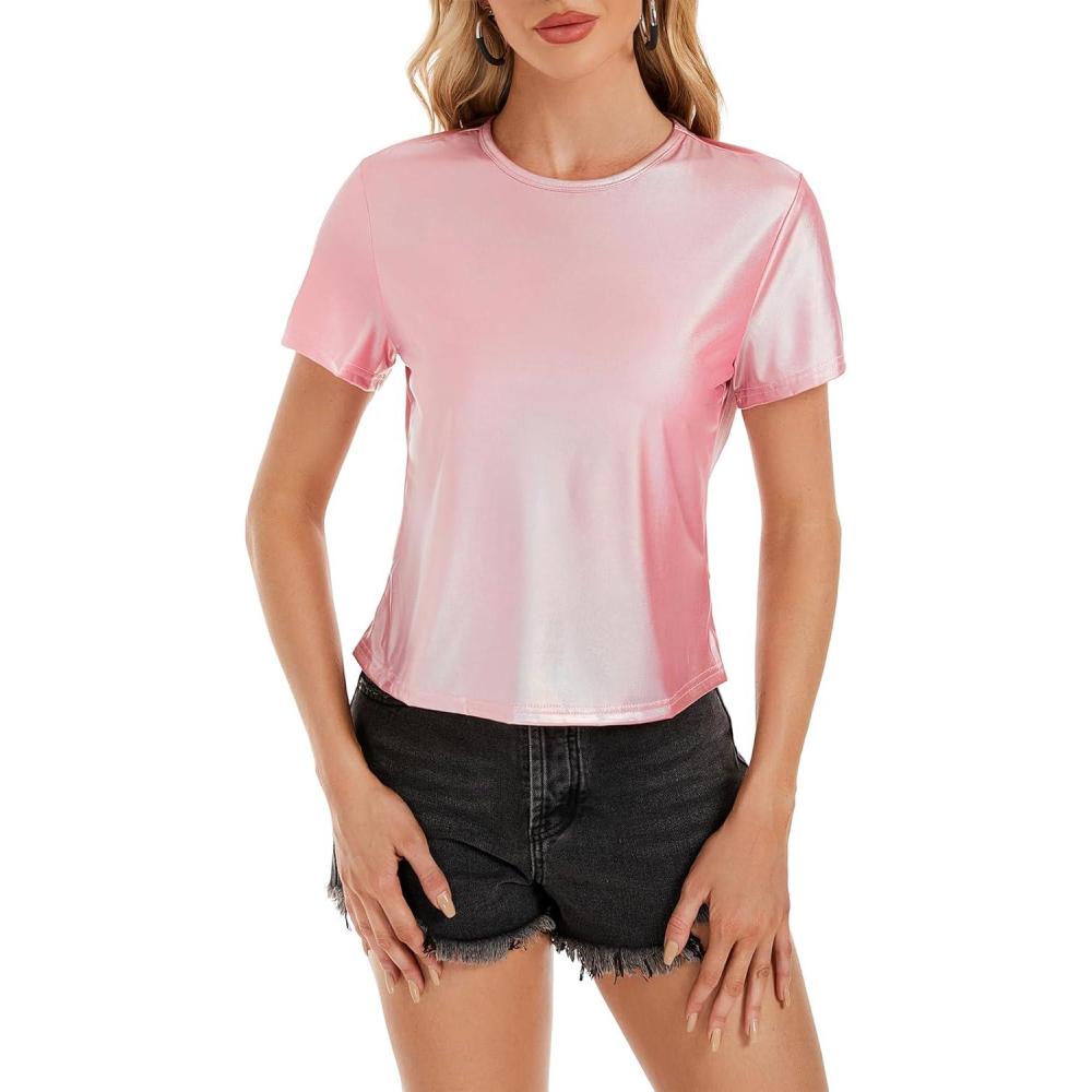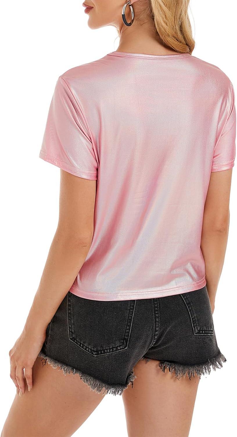 Discover the latest Metallic Disco Shirt Women Short Sleeve Shiny Multicolor Top Music Festival Outfit(Pink) from and take advantage of our limited-time introductory offer.