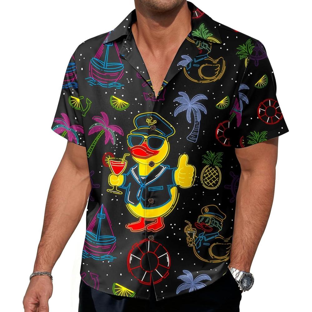 Neon Shirts for Men – Vibrant Print Short Sleeve Button Down Rave Outfit for Party, Festivals & Vacations(Neon Duck)