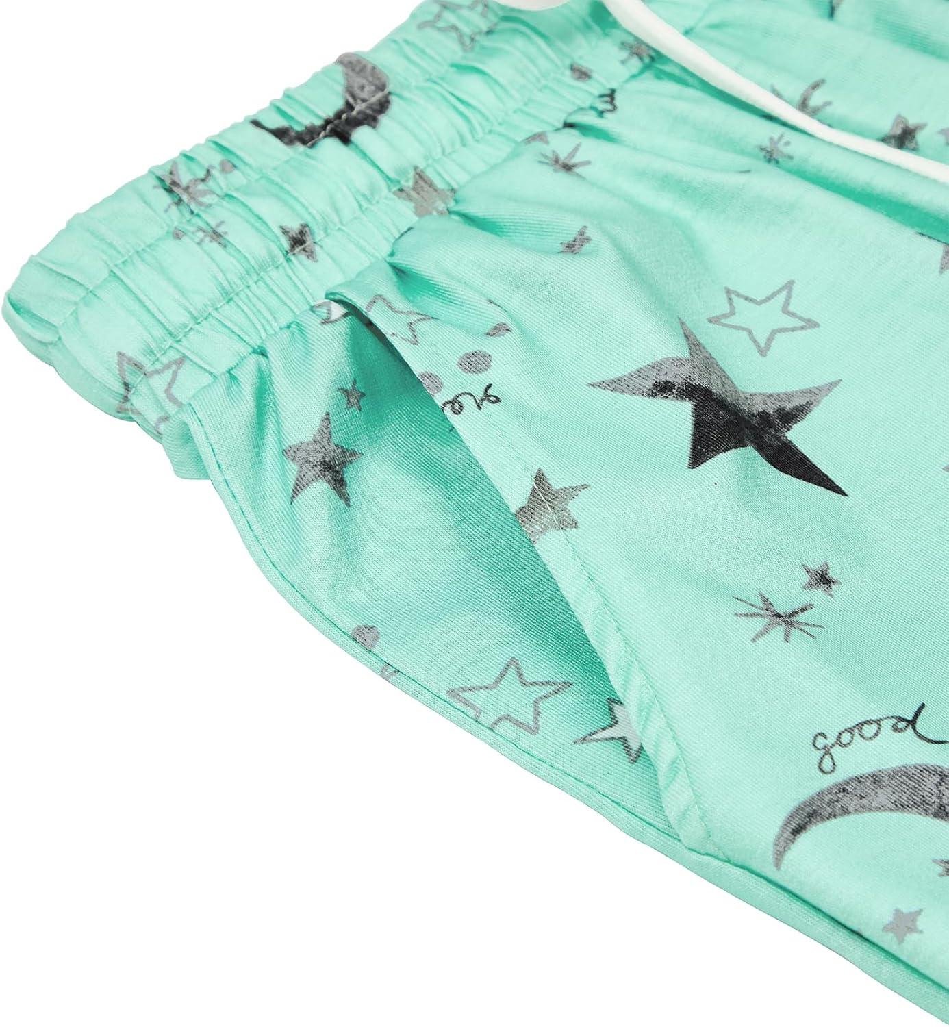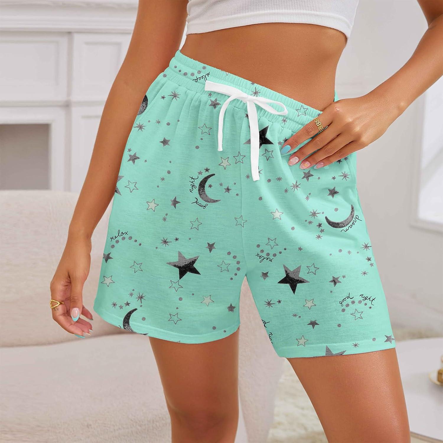 Pajama Shorts Women Set Casual Elastic Sleep Shorts Summer Lounge Pants Comfy Pj Short with Pockets Printed(Aa-green Star)