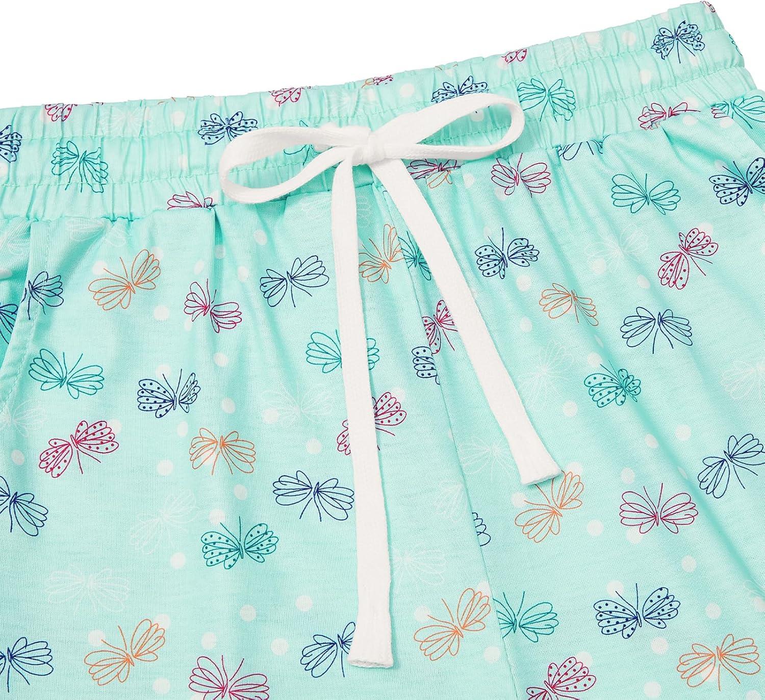 Pajama Shorts Women Set Casual Elastic Sleep Shorts Summer Lounge Pants Comfy Pj Short with Pockets Printed(Blue Butterfly)
