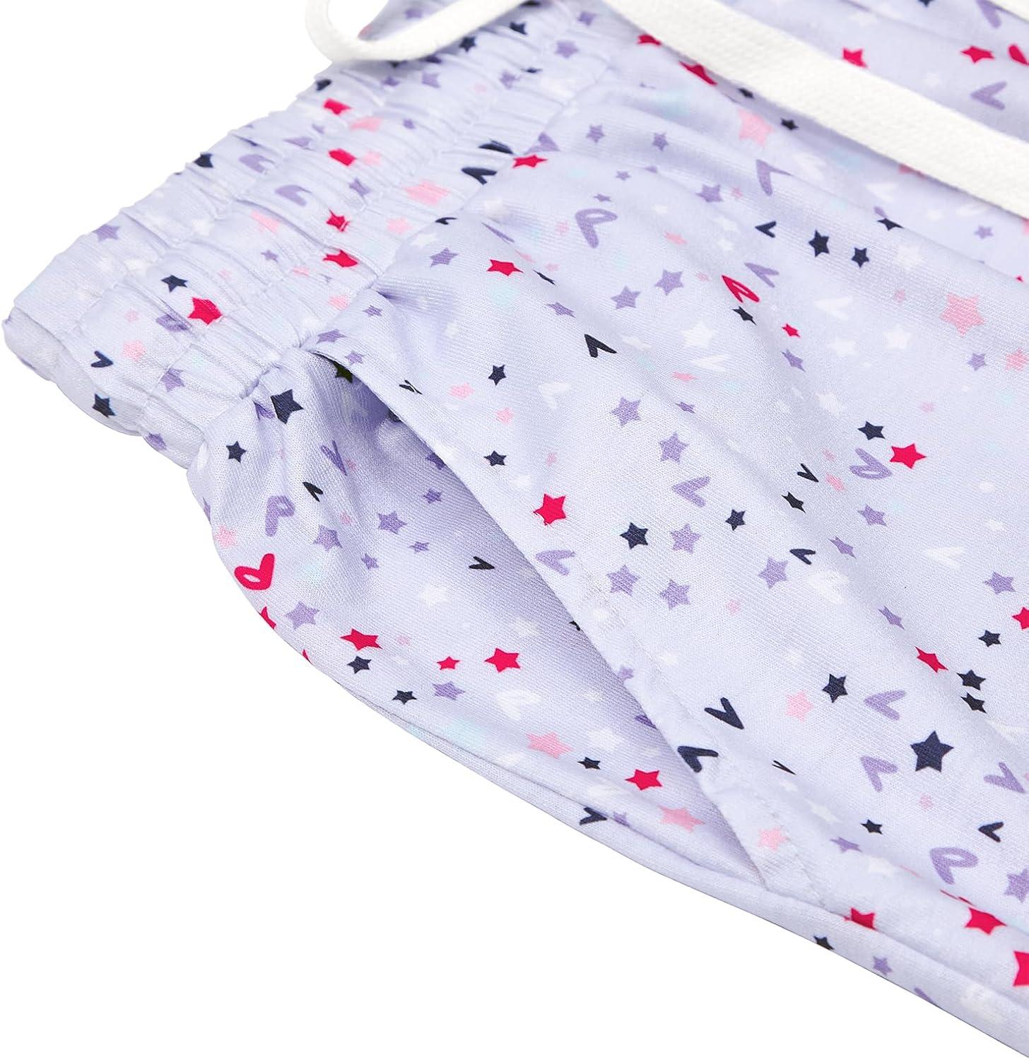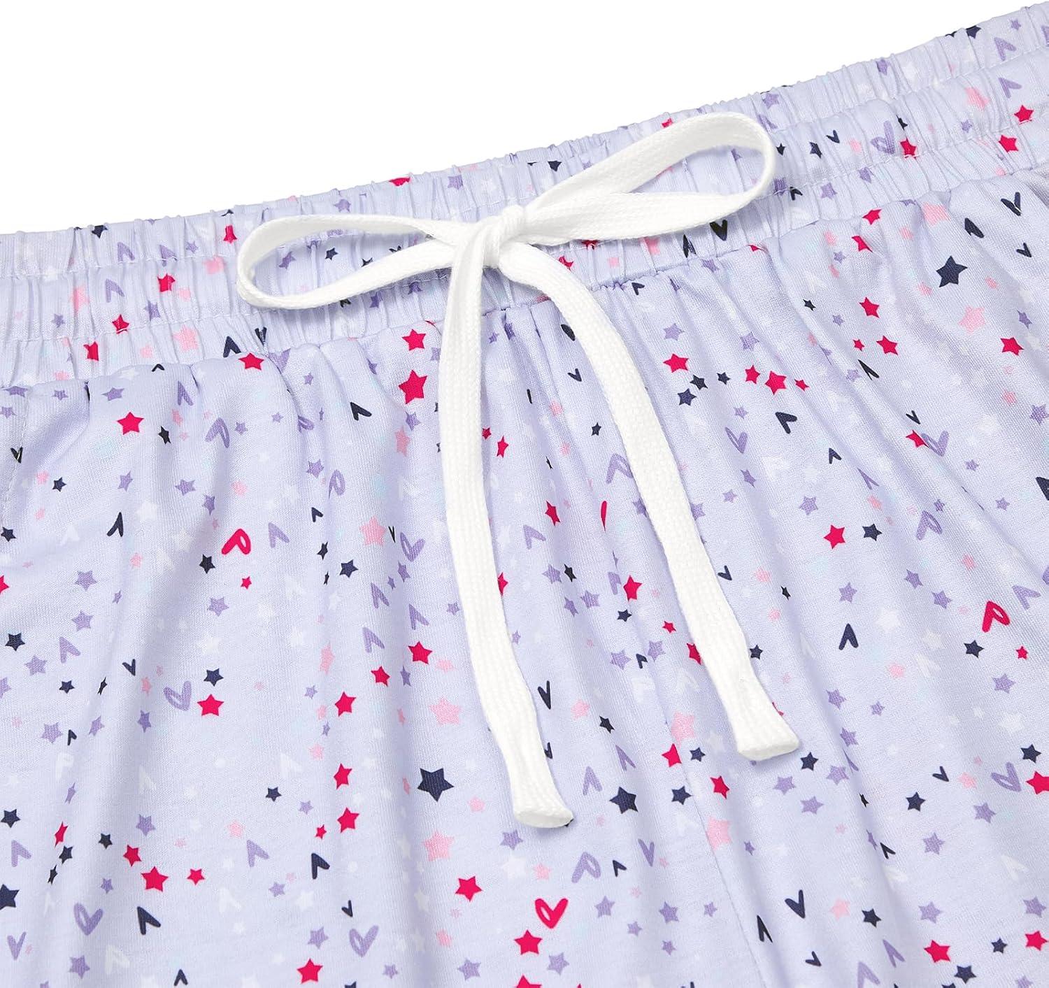 Pajama Shorts Women Set Casual Elastic Sleep Shorts Summer Lounge Pants Comfy Pj Short with Pockets Printed(Purple Star Heart)