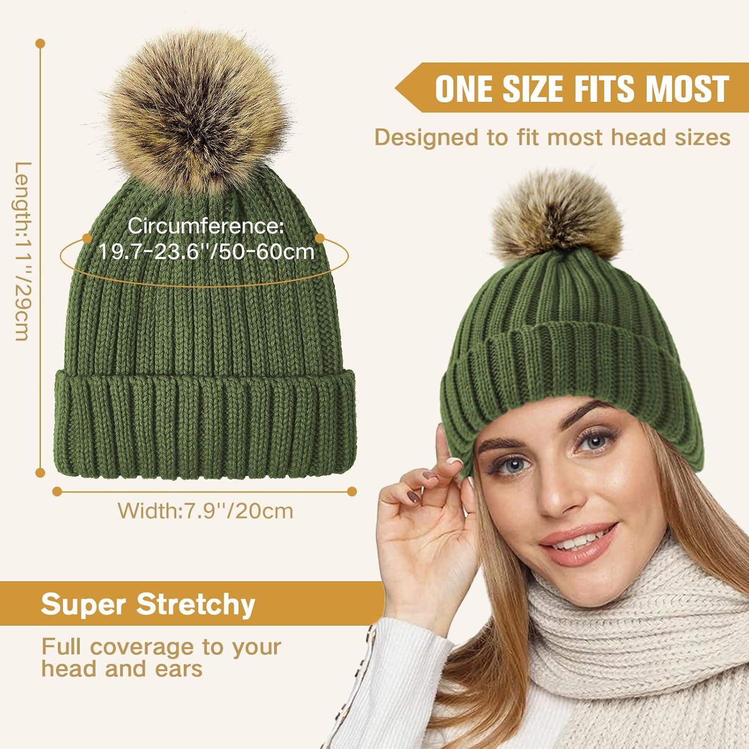 Satin Lined Beanie for Women Knit Winter Hats Silk Lined Womens Beanie with Detachable Pom Pom(A Black)