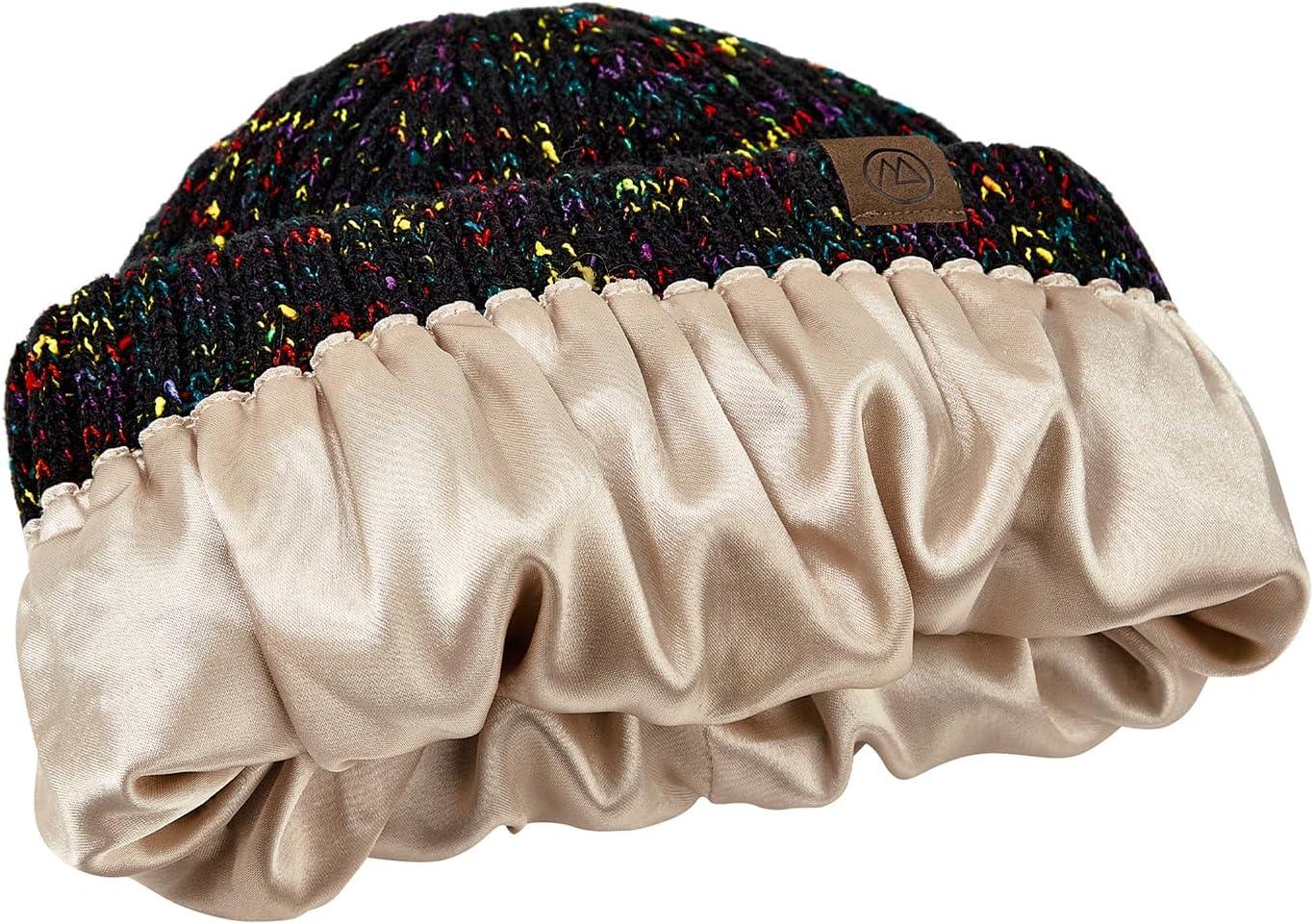 Satin Lined Beanie Women-Winter Hats for Women Silk Lined Beanie Cute Warm Knit Cuffed Hat Snow Ski Cap(Black Mix)