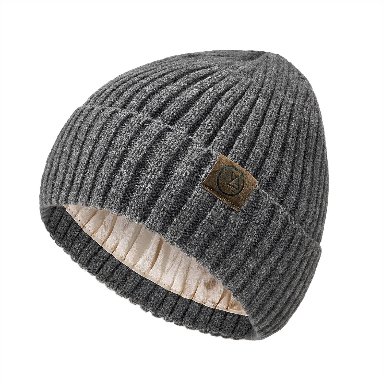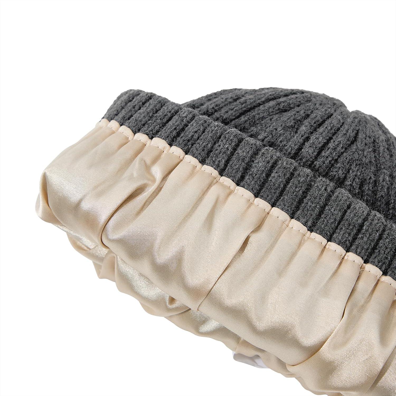 Satin Lined Beanie Women-Winter Hats for Women Silk Lined Beanie Cute Warm Knit Cuffed Hat Snow Ski Cap(Dark Grey)