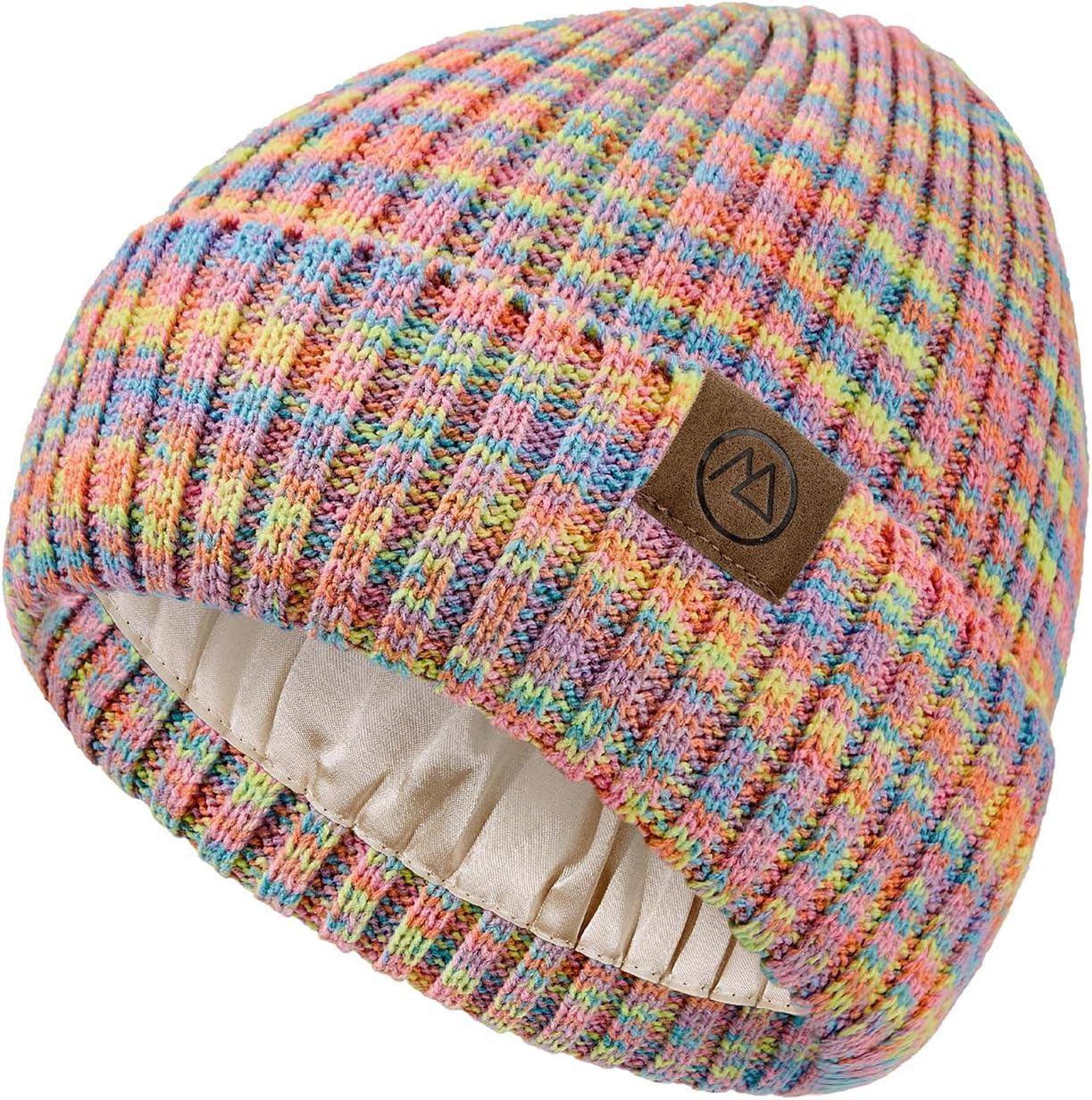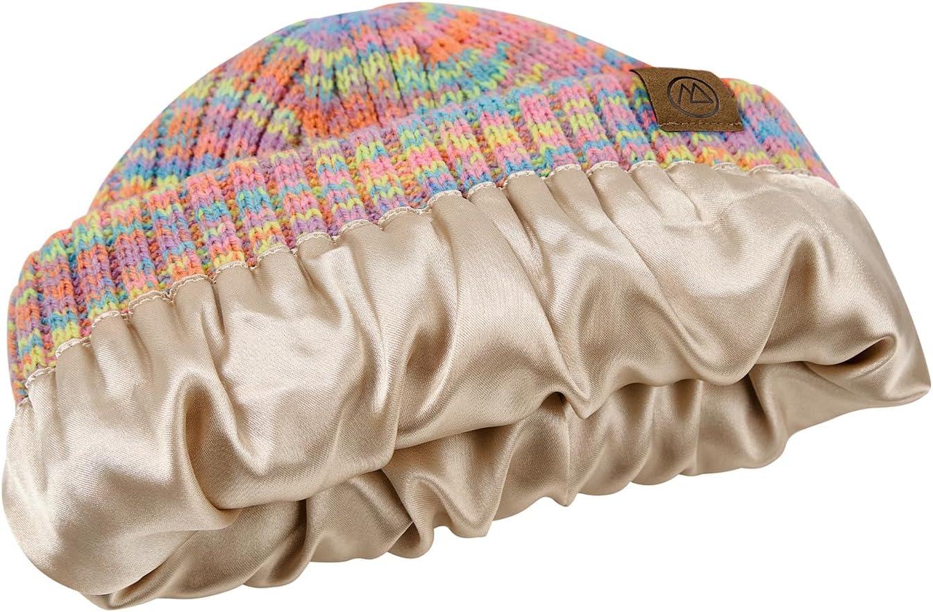 Satin Lined Beanie Women-Winter Hats for Women Silk Lined Beanie Cute Warm Knit Cuffed Hat Snow Ski Cap(Pink Mix)