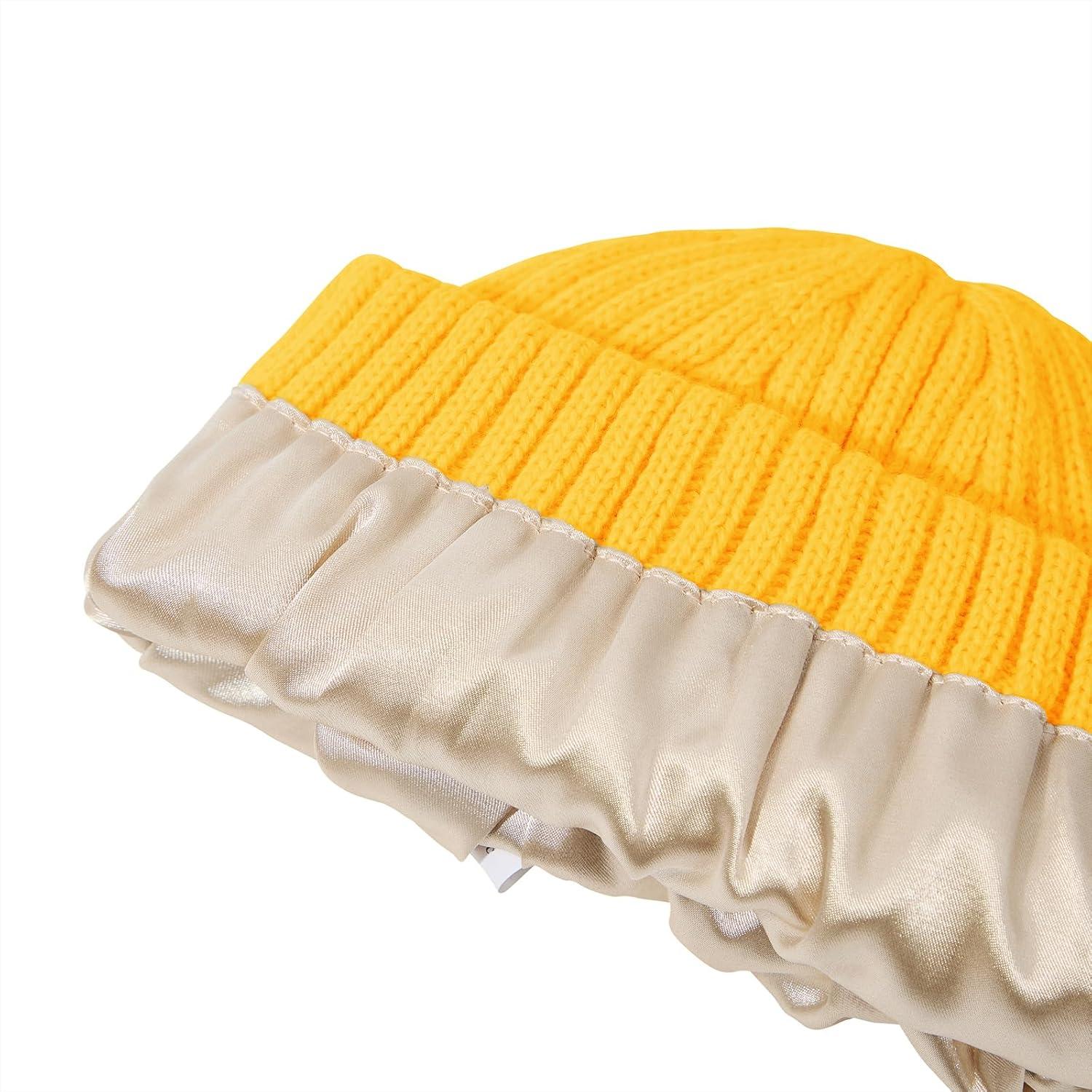 Satin Lined Beanie Women-Winter Hats for Women Silk Lined Beanie Cute Warm Knit Cuffed Hat Snow Ski Cap(Yellow)