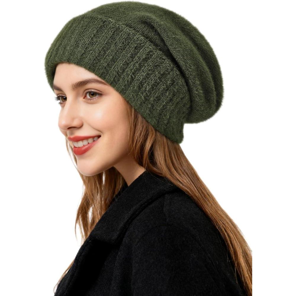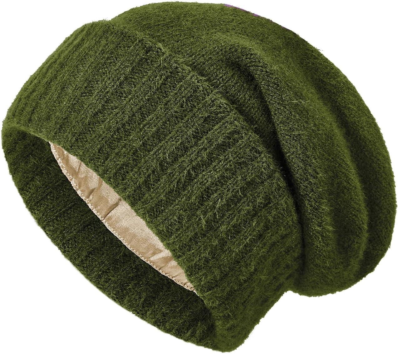 Satin Lined Slouchy Beanie Women-Winter Hats for Women Silk Lined Beanie for Winter Warm Cute Knit Hat(Olive Green)