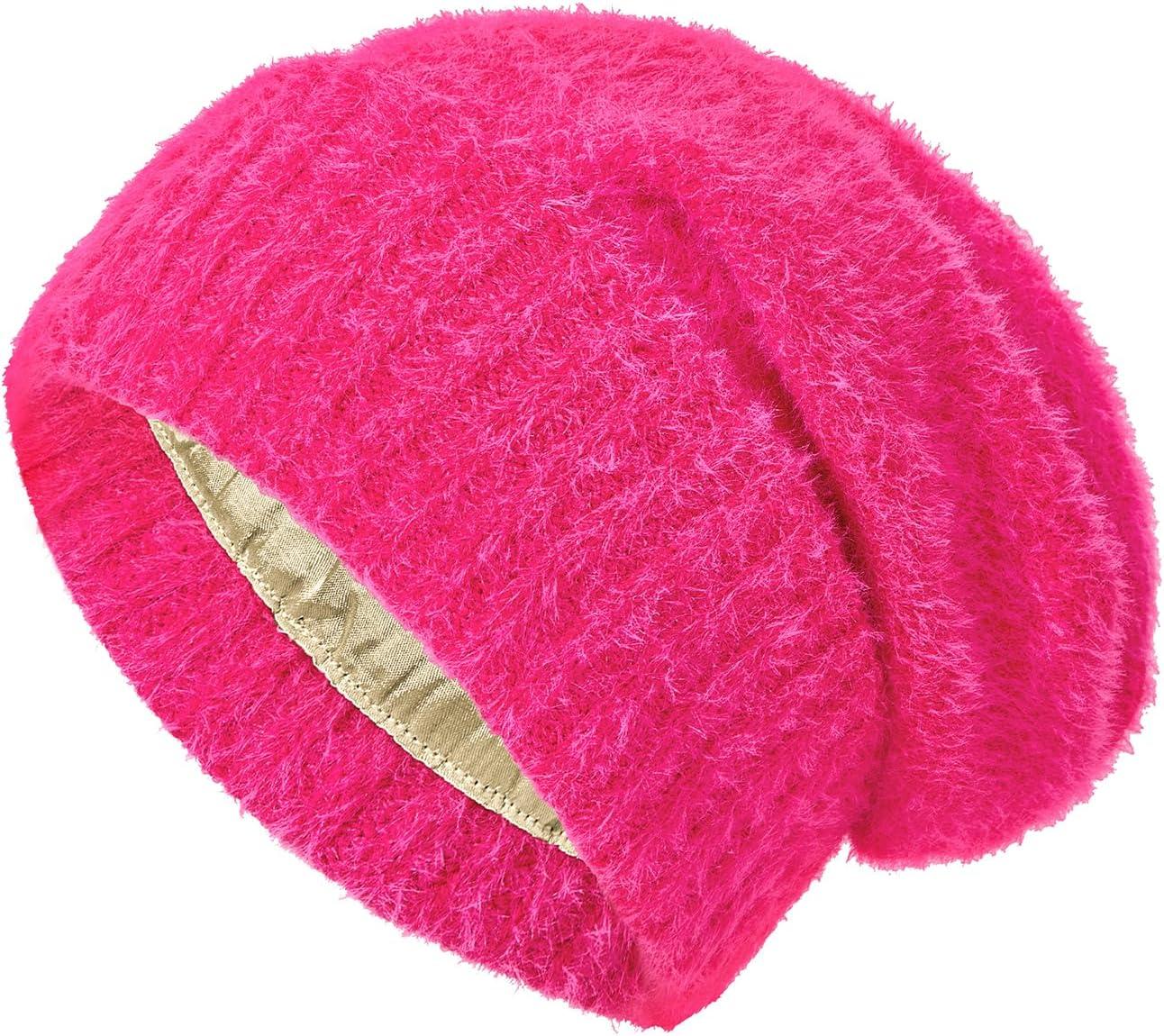 Satin Lined Slouchy Beanie Women-Winter Hats for Women Silk Lined Beanie for Winter Warm Cute Knit Hat(Rose Red)