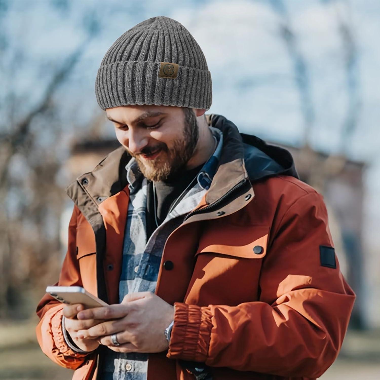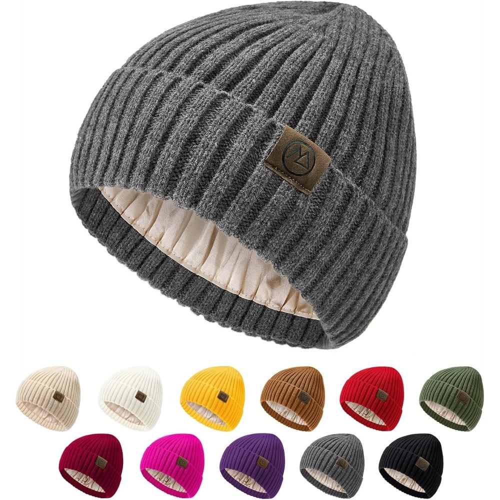 Unisex Satin Lined Beanie Warm Winter Hat Silk Lined Beanie for Women Men Knit Slouchy Hat(Dark-gray)