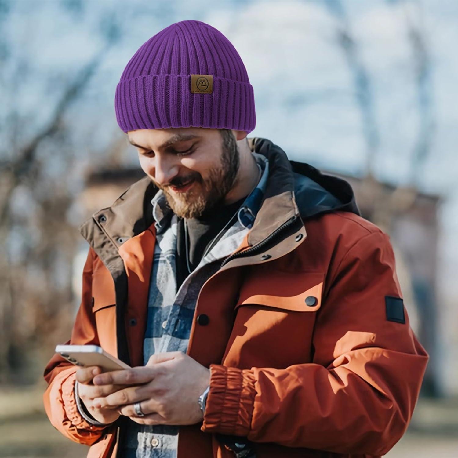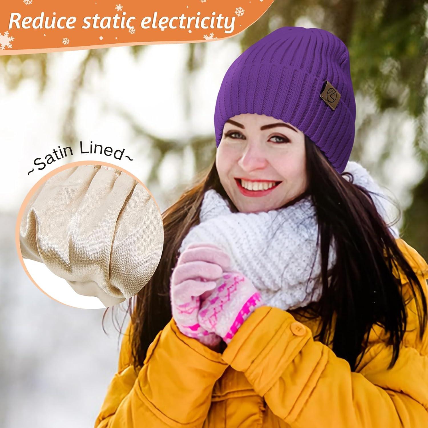 Unisex Satin Lined Beanie Warm Winter Hat Silk Lined Beanie for Women Men Knit Slouchy Hat(Purple)