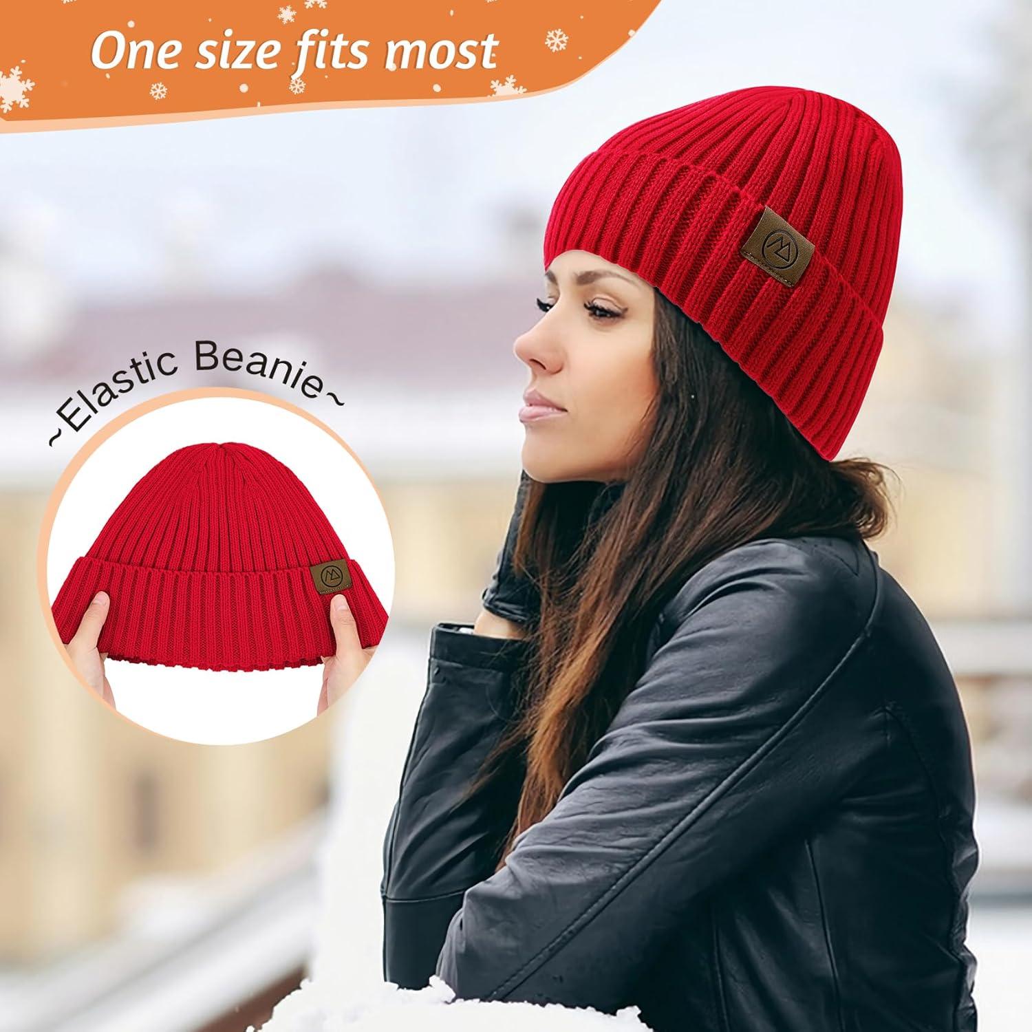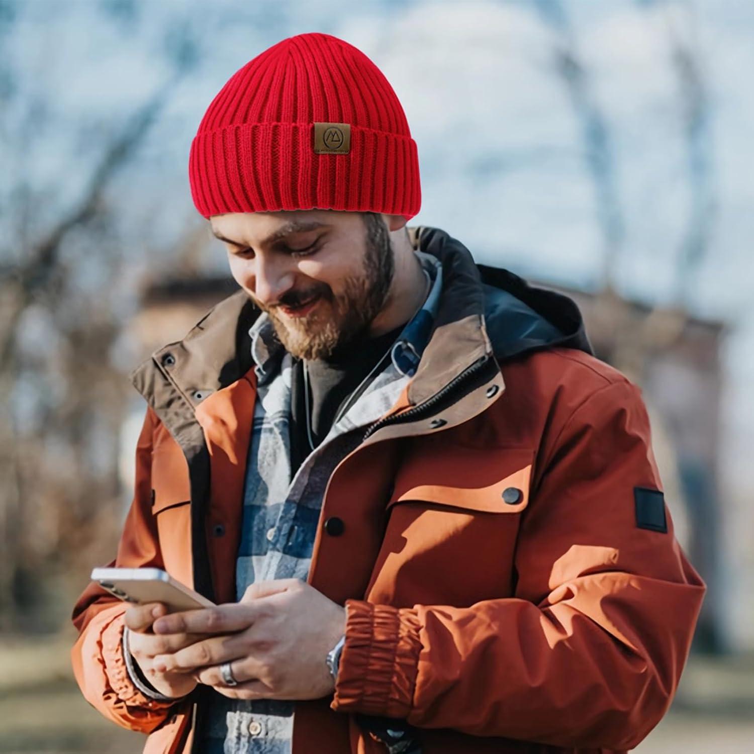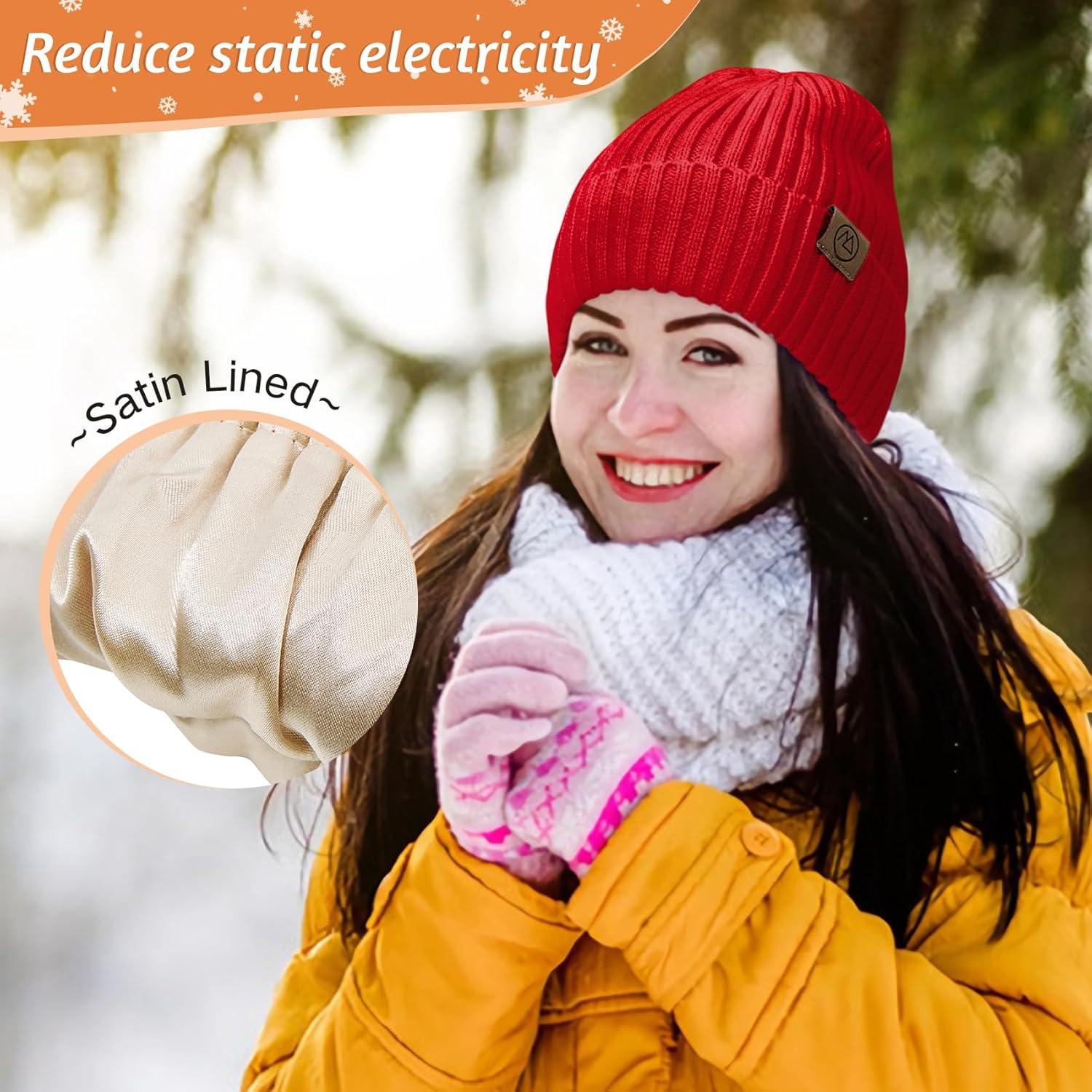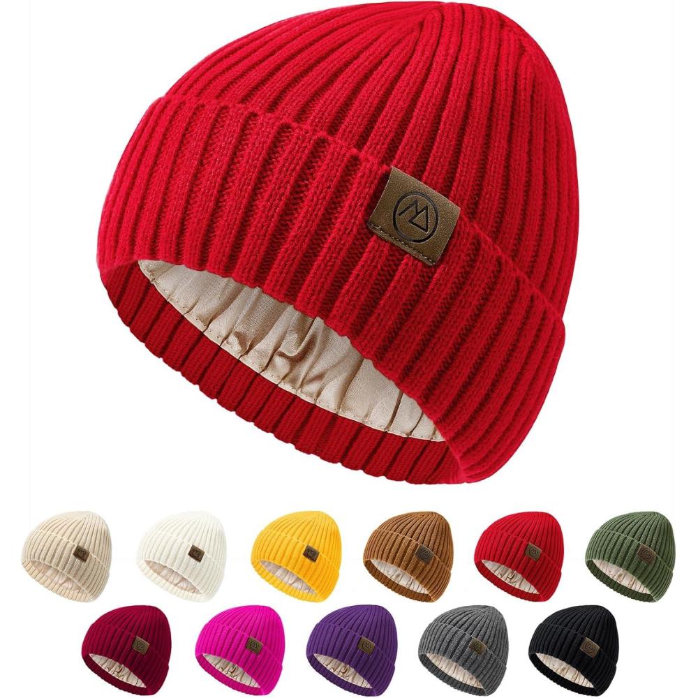 Unisex Satin Lined Beanie Warm Winter Hat Silk Lined Beanie for Women Men Knit Slouchy Hat(Red)