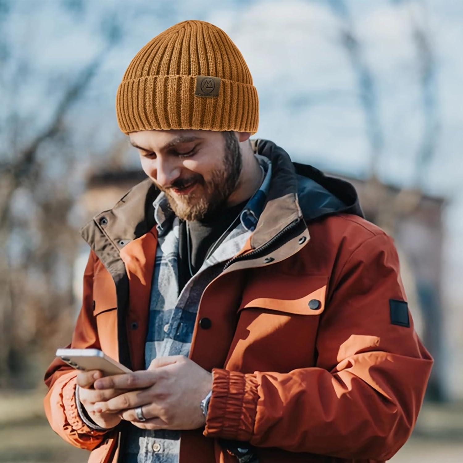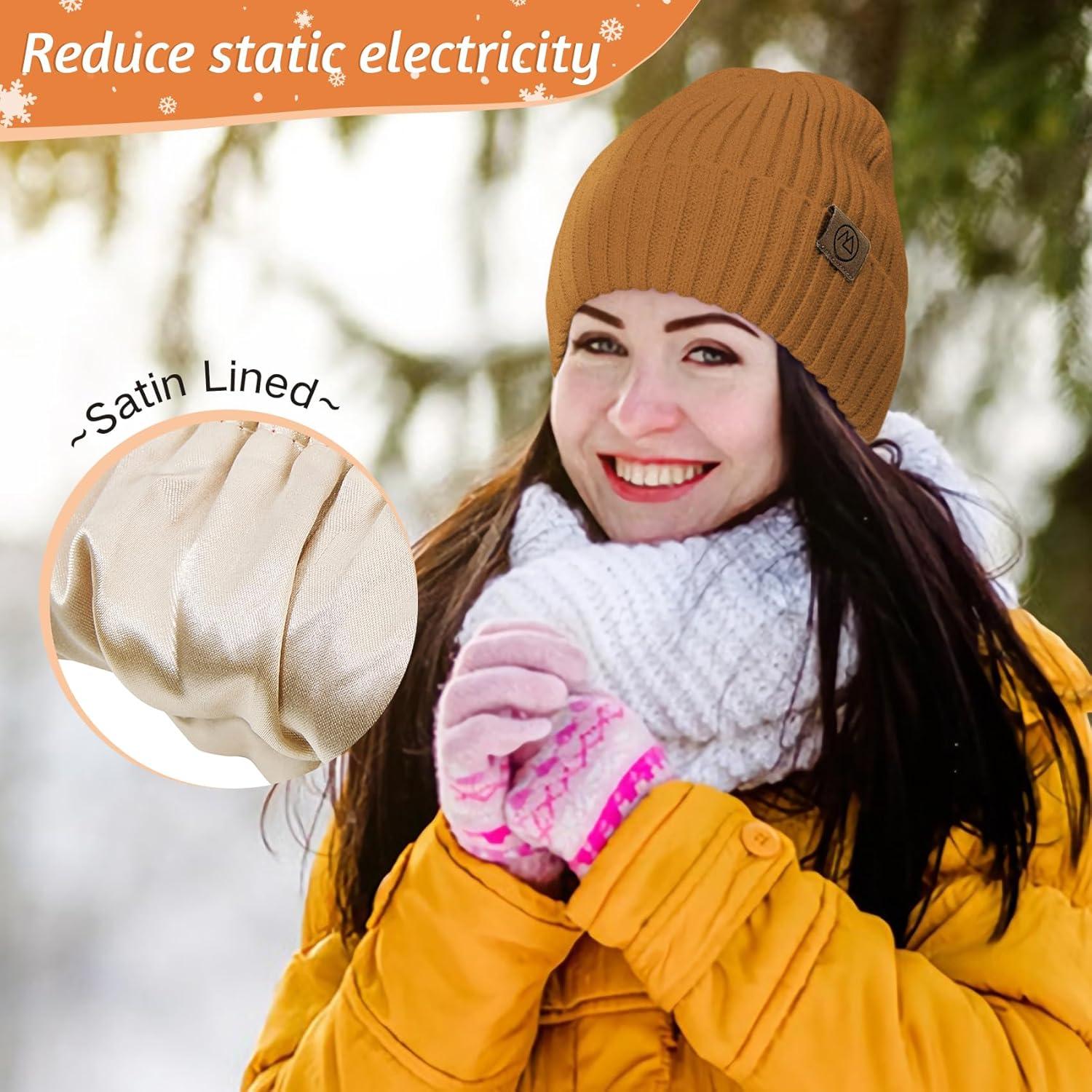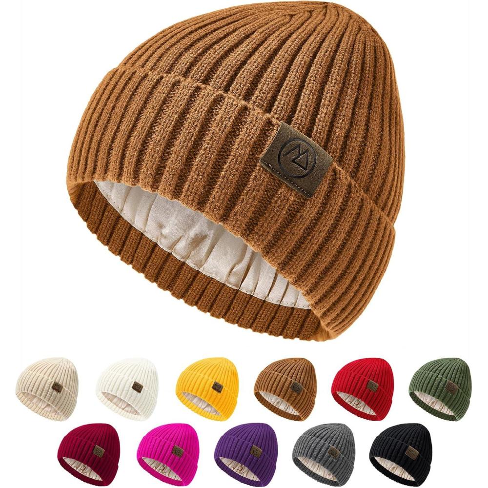 Unisex Satin Lined Beanie Warm Winter Hat Silk Lined Beanie for Women Men Knit Slouchy Hat(Tiger-yellow)