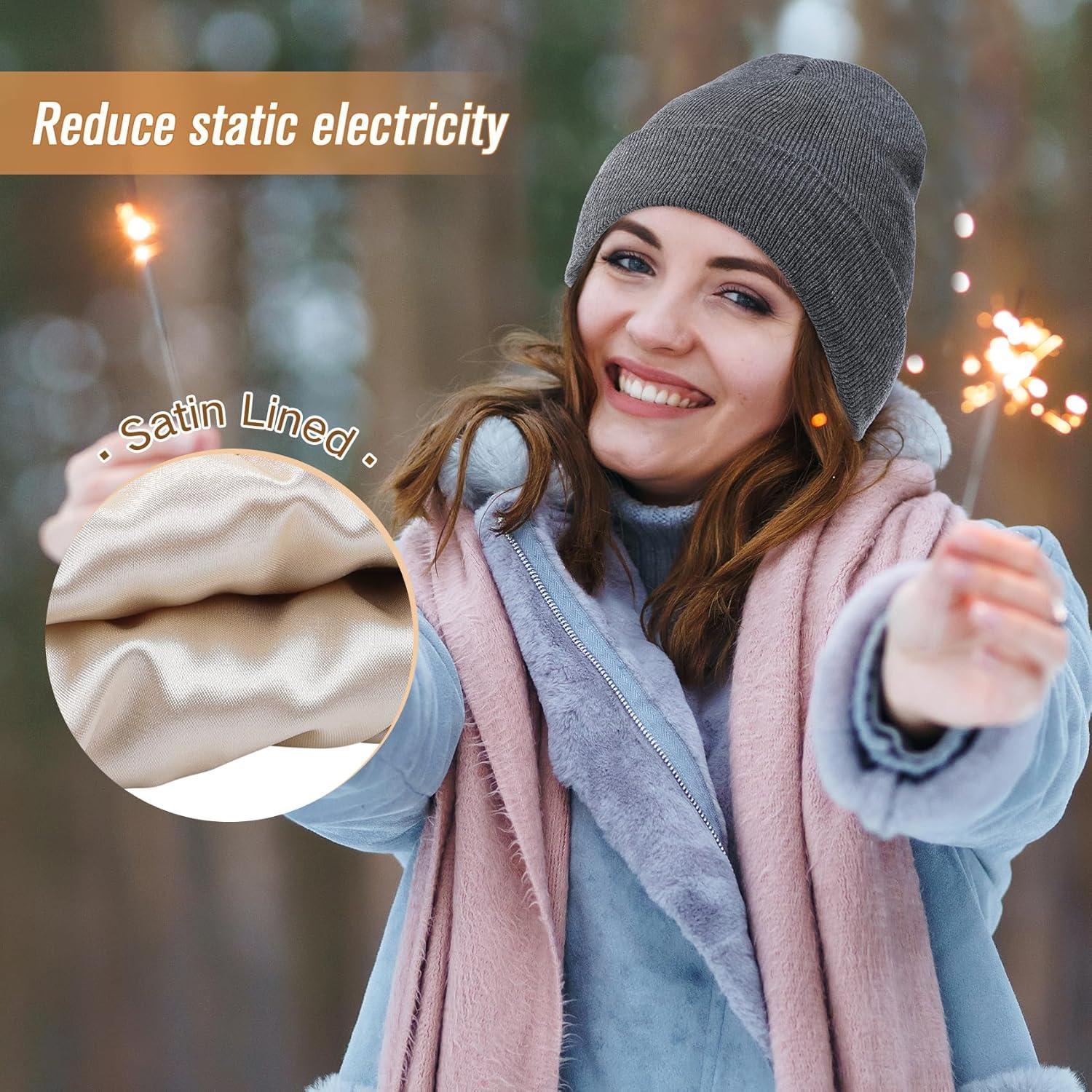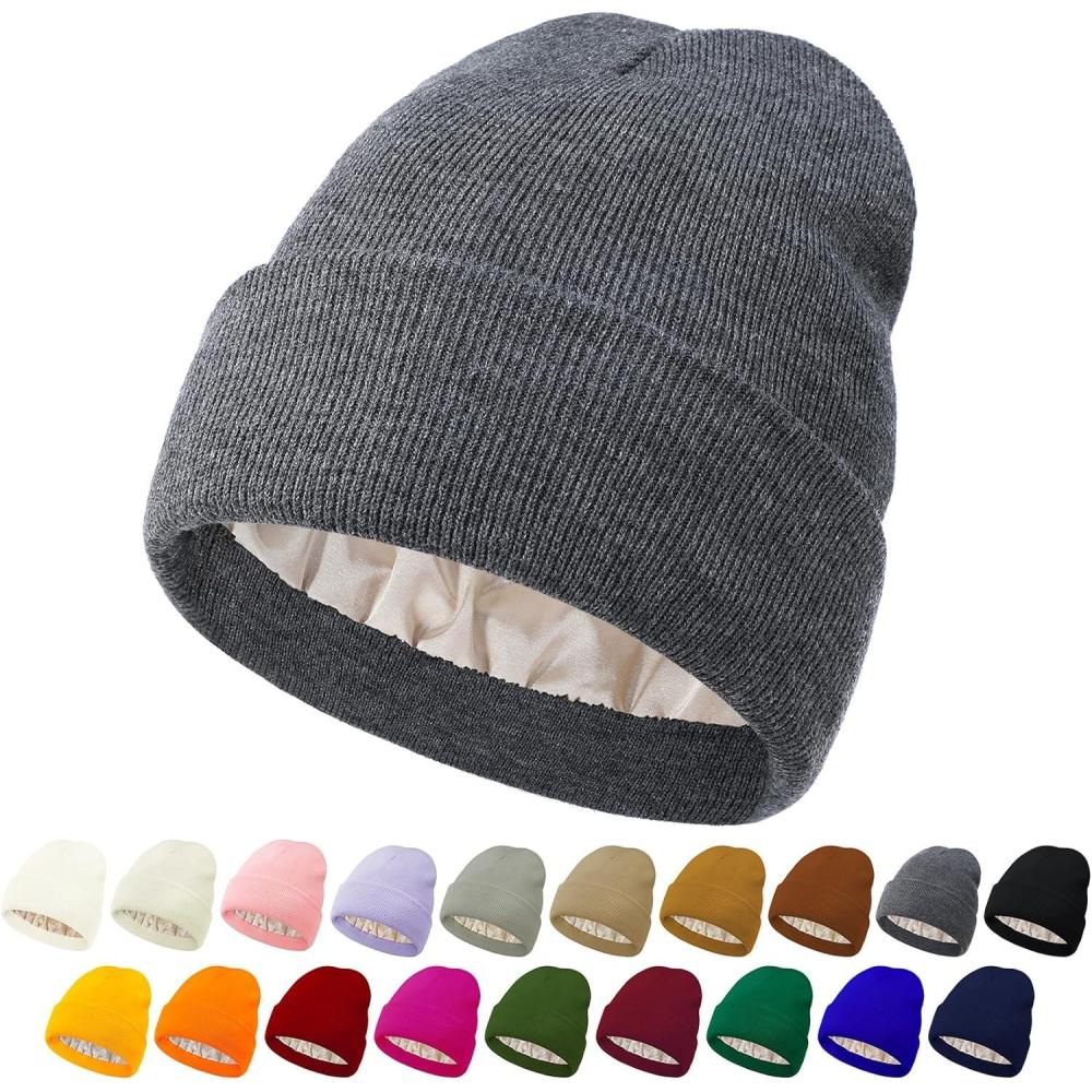 Unisex Satin & Silk Lined Slouchy Warm Winter Hat – Knit Satin Lined Beanie for Women & Men(Dark-gray)
