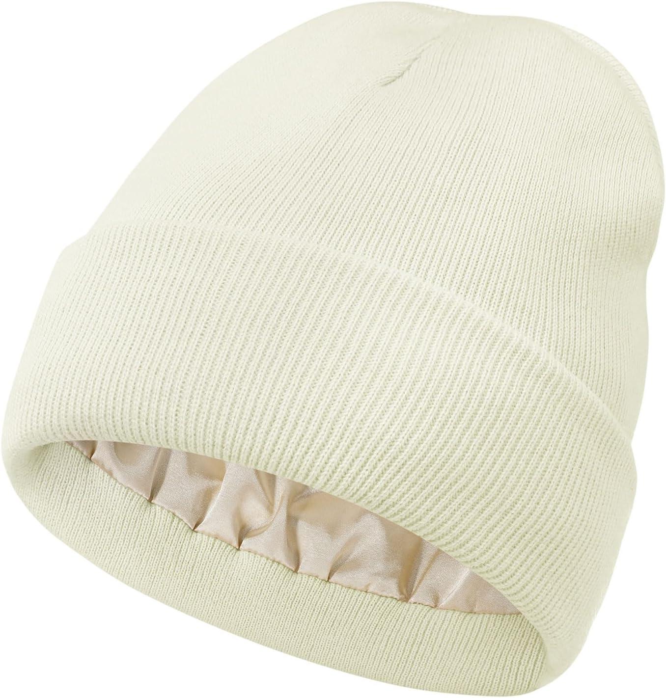 Unisex Satin & Silk Lined Slouchy Warm Winter Hat – Knit Satin Lined Beanie for Women & Men(White)