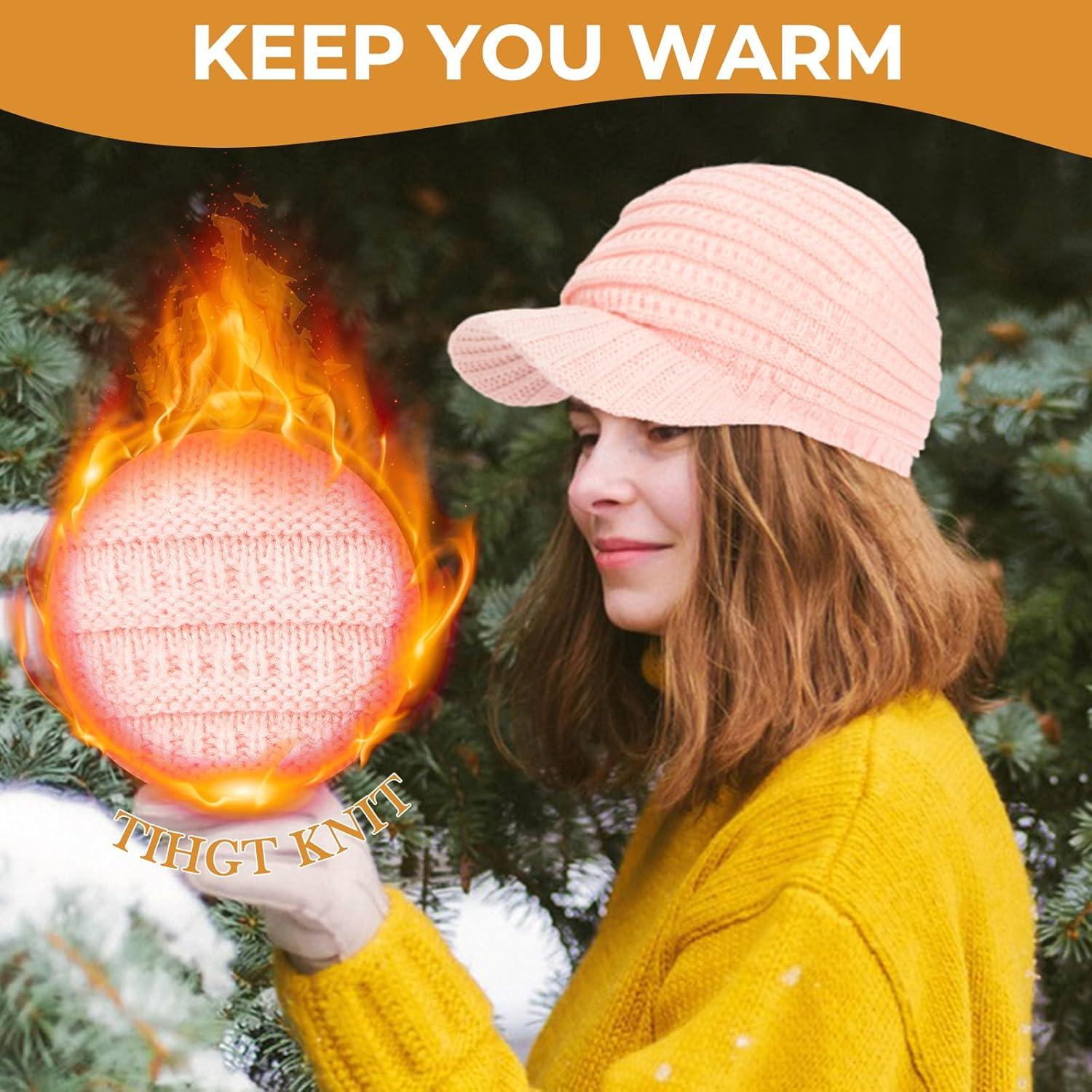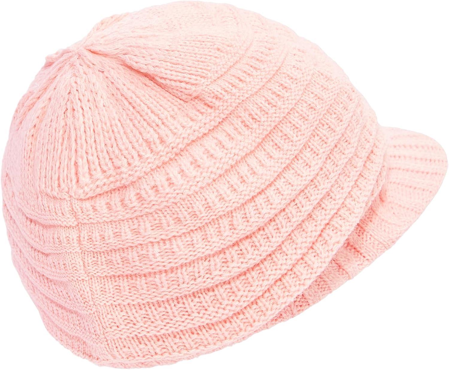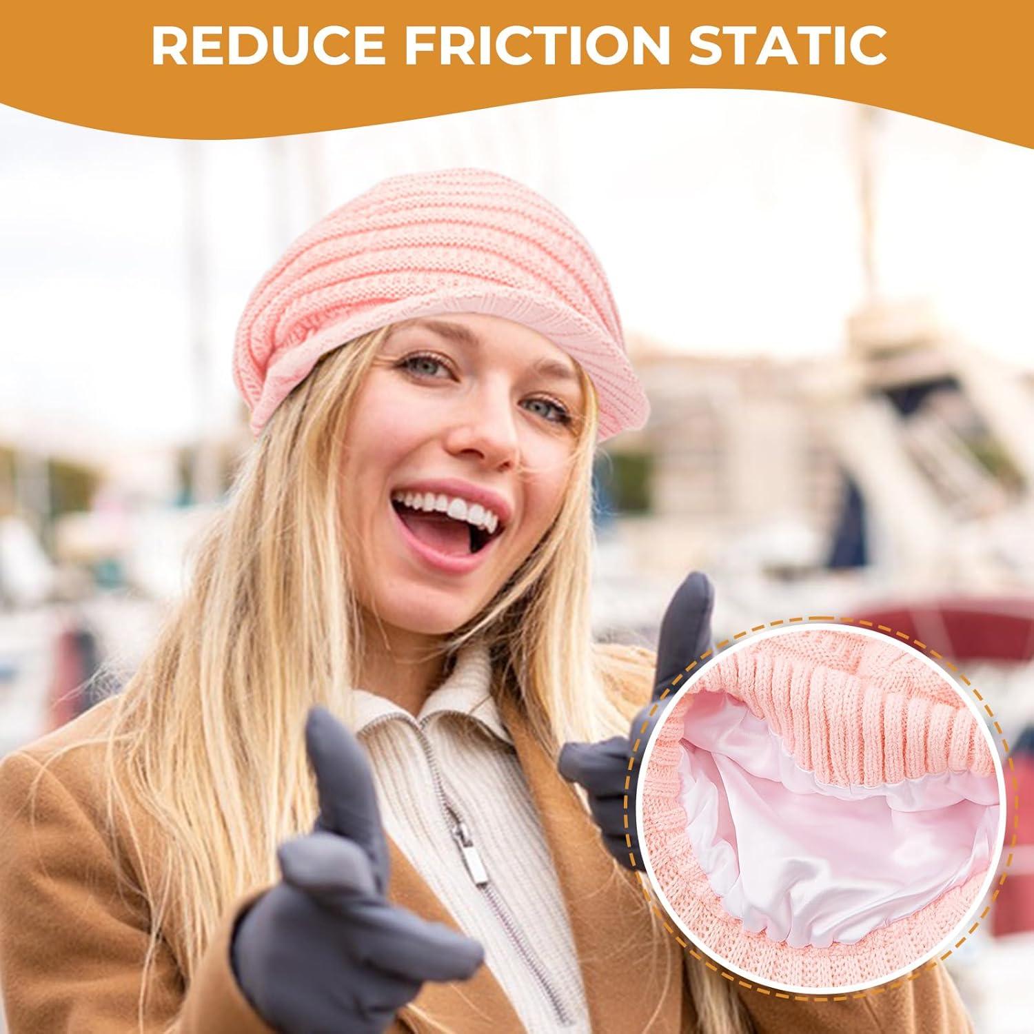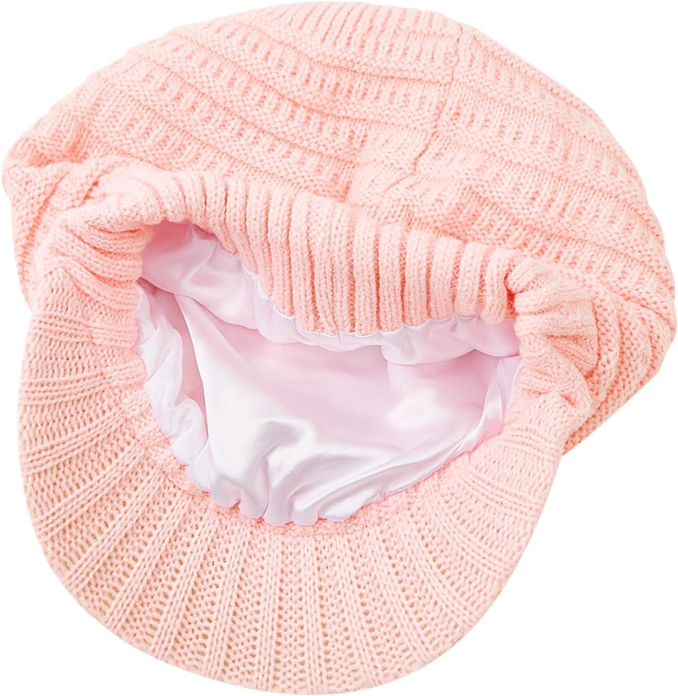 Womens Satin Lined Beanie Slouchy Winter Knit Hat Newsboy Hat with Brim Silk Lined Beanie(Light Pink)